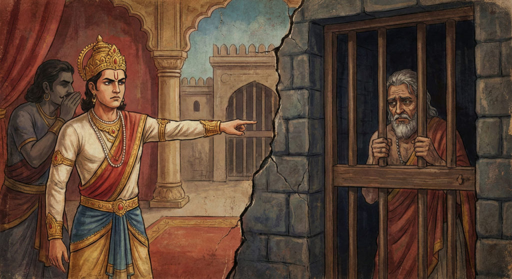 物語をおさらいすると、自身の出生の秘密(父王が仙人を殺して自分を作ったこと)を知ったアジャセ太子が、父ビンバシャラ王を牢獄に幽閉し、王位を奪うところから悲劇は加速しました。